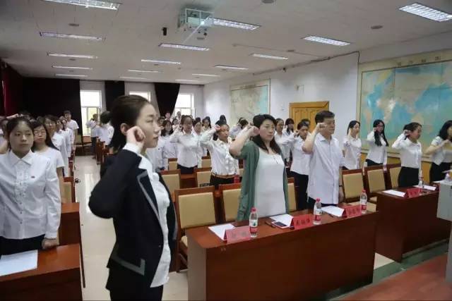 6月24日,地理科学学院党委在四楼报告厅隆重举行庆祝建党95周年入党宣誓大会。学院党委书记谷国锋、老党员代表、学生党支部书记、全体学生党员和全体学生预备党员共计80余人参加了大会。大会由学院党委组织委员沈雯主持。