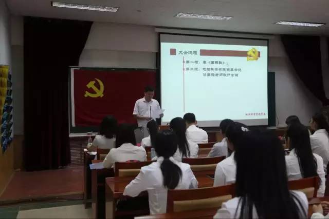 大会在庄严的《国际歌》中拉开序幕。学院党委书记谷国锋向新党员表示欢迎与祝贺,同时要求所有党员都要按照《中国共产党章程》要求以共产党员的标准严格要求自己。在领誓人2013级、2014级、2015级联合党支部书记赵琳的领誓下,全体党员面向鲜红的党旗,向党旗致敬,举起右拳,神情严肃,逐字跟读誓词。之后,新党员代表赵黎和老党员代表牛彩澄分别讲话,表示要以先进模范为榜样,更加努力地为党贡献力量。最后,沈雯向全体党员提出了殷切希望,希望全体党员践行“学党章党规、学系列讲话,做合格党员”的具体要求,号召全体党员为实现伟大复兴的中国梦而努力奋斗!