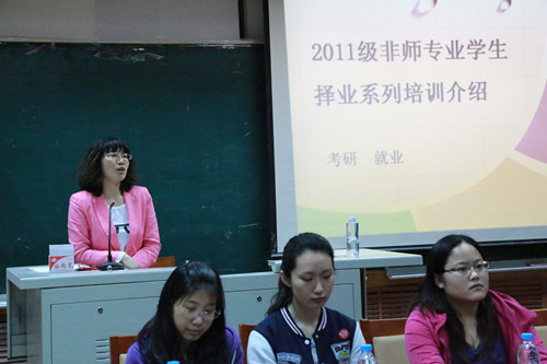 下午6点整,主持人宣布讲座正式开始后,陈静老师首先发表了讲话,旨在希望大家慎重对待人生选择,确立目标之后贵在持之以恒,坚持不懈。接着2010级优秀的学姐学长们对保研考研以及申港出国的相关事项做了详细的讲解。他们结合自身经历,对保研时的各项要求、相关政策,考研中的复习方法、心态调整,申港出国时如何选择学校、具体注意事项等这些方面进行详细的解说。整场讲座过程,同学们听讲十分认真。在最后的互动提问环节,同学们就自己的一些问题向学长学姐们进行咨询,学长学姐们也对此进行细致认真的解答。晚上9点,在主持人宣布讲座结束后,同学们的热情并没有消散,很多同学没有离场,而是到台前与学长学姐进行交流。