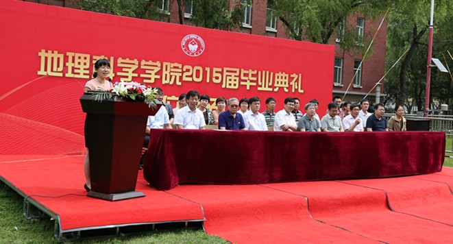 7月1日上午,地理科学学院2015届本科生毕业典礼暨学位授予仪式隆重举行。学院学位评定分委员会、党政领导班子及学院各系教授、教师代表出席典礼。