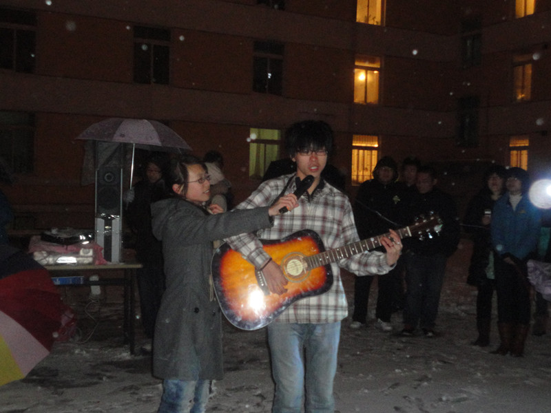 活动于晚上8点半正式开始,虽然天公不作美,下着鹅毛大雪,但是大家还是如期出现在活动现场,一起参加了这次有意义的活动。观众们在主持人的带领下一起倒数“10、9、8……2、1”,在所有人的见证下,一舍的灯相继熄灭,最后呈现出预先设计的“60+”造型,赢得了现场观众的一阵欢呼。随后在几首动听的音乐演唱后,活动逐渐进入状态,特别是一首吉他弹唱让我们领略了吉他的独特魅力。在城环学院大艺团的支持下,《girl friend》的热舞把活动带入了高潮,各位观众都拿着荧光棒挥舞尖叫,融入这个活跃的气氛。最后活动在绿色动力环保志愿者协会会长的讲话中圆满结束。
