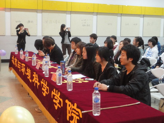 比赛于当日下午一点半正式开始,东北师范大学第三十六届校学生会主席兼城环学院第十四届学生会副主席刘洁,第十六届城环学院学生会主席陆天琪、副主席孙瑜等人作为评委兼嘉宾出席本次比赛。在主持人热情激昂的开场白中,比赛拉开帷幕。接着,随着欢快的视频简介,四个小组依次闪亮登场。比赛首先进行的环节是“各显神通”选择题作答环节,依旧保持了本次比赛的原则,比赛内容涉及地理、环保、天文、趣味、生活等多方面的知识,充分考验了选手们的视野。各组选手也果真各显神通,尤其是城环学院的学生结合专业知识成功闯关。选手求助时,场下观众积极响应,果断作答。紧接着的“猜口秀”环节更是妙趣横生。选手们的默契配合,再加上主持人的幽默风趣,全场气氛达到高潮。第三个环节是视频题。第四个环节则是“变废为宝”创作题。这一环节各小组也是各显神通,充分展现了他们的创新与动手能力,赢得全场观众的阵阵喝彩。最后一环节是“上天入地”选择题作答环节,而评分规则与第一环节稍有差别。这也是各小组一决胜负的关键环节。在紧张激烈的作答之后,胜负揭晓,比赛结束。最后,在主持人铿锵有力的尾声中,本次大赛圆满拉下帷幕。