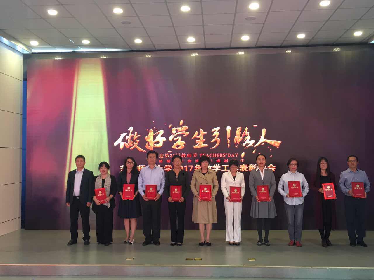甘为人梯育英才,抚育桃李献丹心。9月10日,在第33个教师节到来之际,学校隆重召开了主题为“做好学生引路人”的教学工作表彰大会,对2016年度在本科教学一线工作中做出突出贡献的教师团队和个人进行表彰。会上,我院四位教师获奖,具体如下: