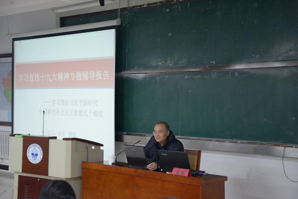 11月26日,我校原党委宣传部部长、党建研究所所长的范军教授作客我院“青马讲堂”,做了题为“学习领会习近平新时代中国特色社会主义思想几个维度”的专题报告,共吸引学院教师、学生党员和积极分子180余人参加。