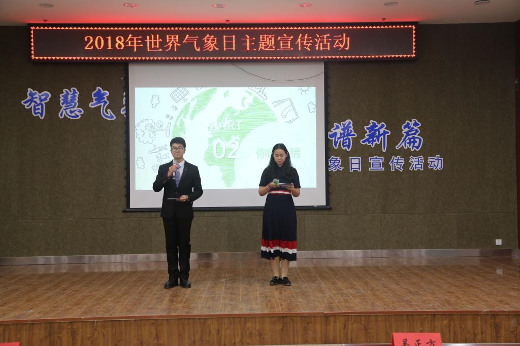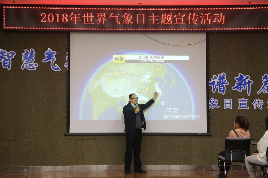 活动中,吴正方阐释了2018年世界气象日主题“智慧气象”的内涵以及“智慧气象”对天气事件应对的重要作用。陈长胜为师生做了题为《新时期天气预报和气象防灾减灾》的报告,分别从天气预报制作过程、天气预报的准确性和如何利用天气预报等进行气象科普宣传。随后,2016级各团支部通过“看云识天气”和“我是天气预报员”的实践环节强化了气象知识的普及。最后,嘉宾和学生共同发出“关注气象”的签字倡议。