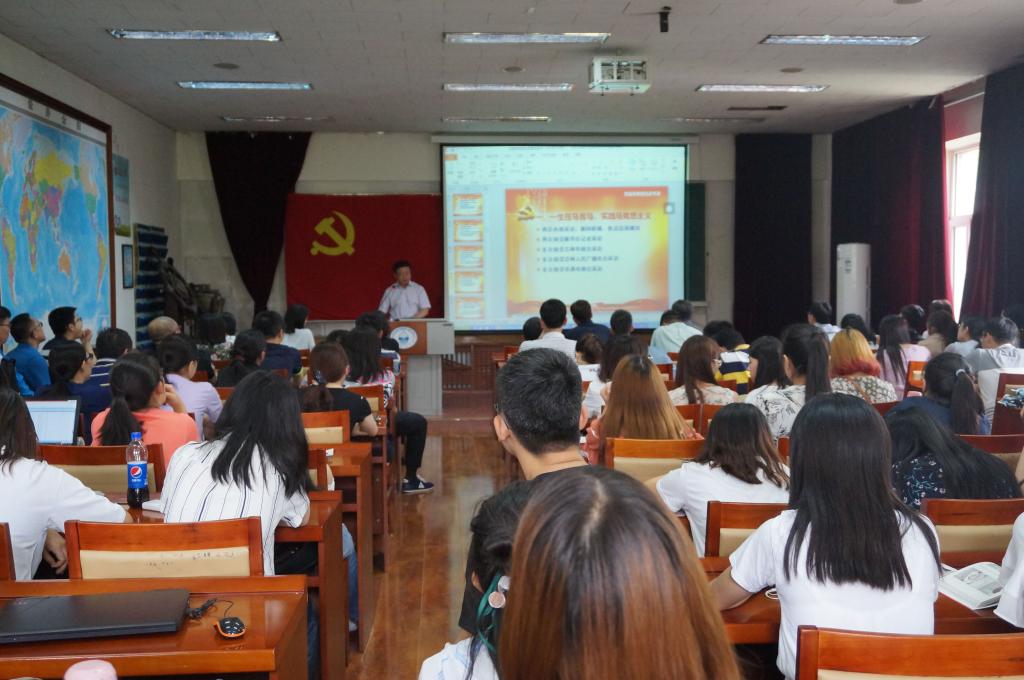 6月6日,在建党九十七周年来临之际,学院党委组织“不忘初心、牢记使命向优秀共产党员郑德荣同志学习”主题党日活动,邀请郑德荣先生的学生、我校马克思主义学部程舒伟教授讲授郑先生的生平事迹和高尚品格,学院全体教职工党员、学生党员、入党积极分子代表和群众代表共计100余人参加了活动。