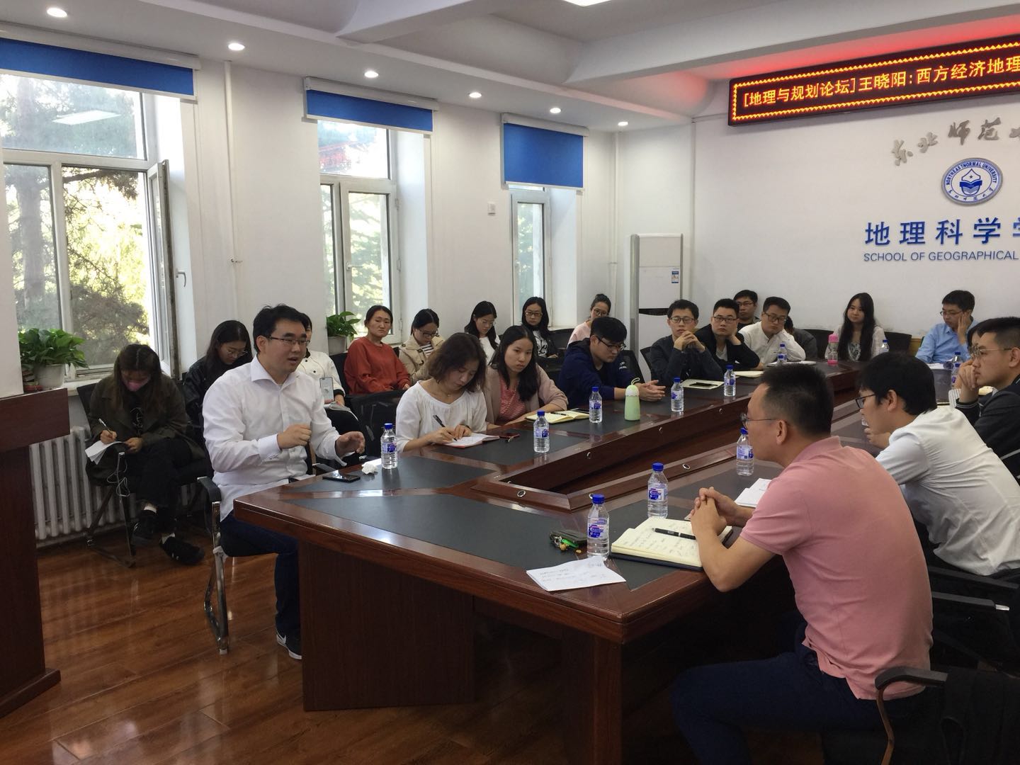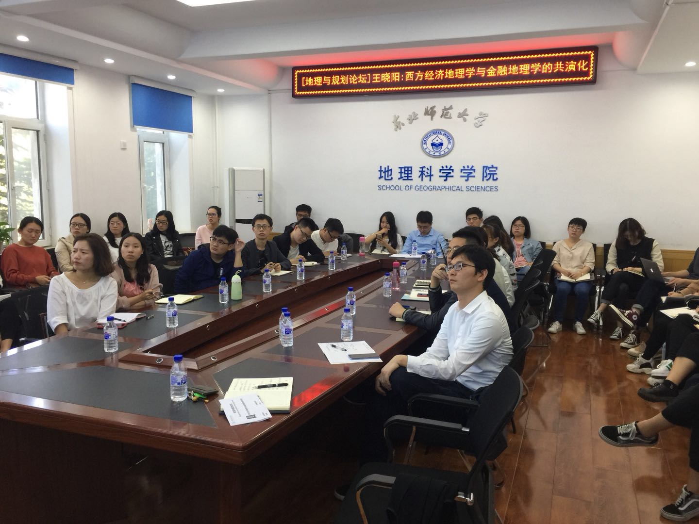 9月20日,美国哈佛大学城市规划与设计系访问学者王晓阳博士作客我校“地理与规划论坛”,为学校师生作了题为“西方经济地理学与金融地理学的共演化”学术报告。