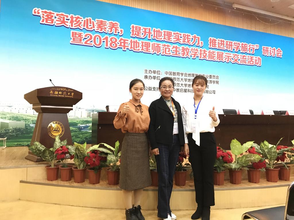2018年9月28日至30日,第五届全国高校地理师范生教学技能展示交流活动暨“落实核心素养,提升地理实践力,推进研学旅行”研讨会在新疆师范大学举行。我院2015级地理科学(公费师范)专业本科生荣佳琦(指导教师:娄晓黎,欧炜)斩获最高奖项,被专家委员会审定为“大会示范课”(一等奖),在大会上进行教学展示(仅有六位选手大会展示);我院2017级地理课程与教学论专业研究生张岚(指导教师:王向东,张福彦),被专家委员会审定为“交流展示课”(三等奖)。