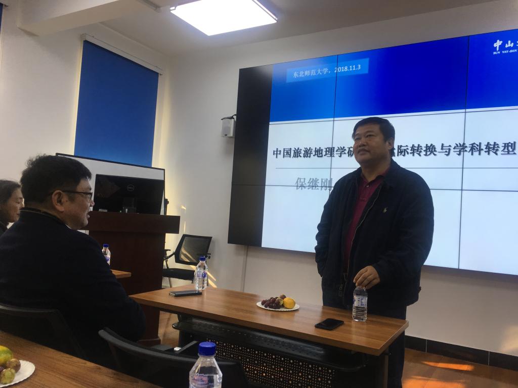 11月3日,教育部长江学者特聘教授、中山大学保继刚教授作客我院“地理与发展论坛”,为学校师生作了题为“中国旅游地理学学术实践的代际差异与学科转型”的学术报告。