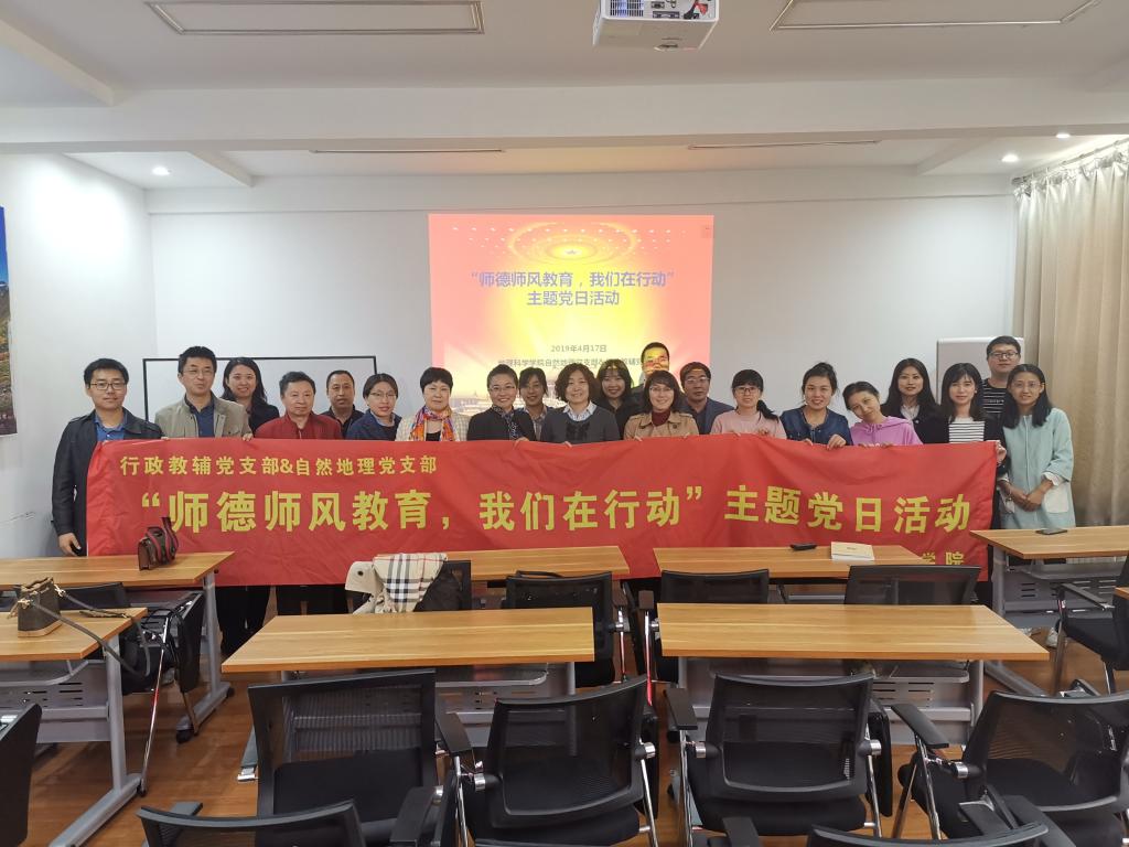 为迎接学校第十五次代表大会召开,立足本职、奋发有为,用实际行动向建党98周年和中华人民共和国成立70周年献礼。4月17日,地理科学学院行政教辅党支部联合自然地理党支部,开展“师德师风教育,我们在行动”主题党日活动。