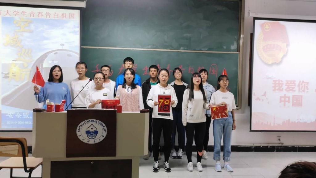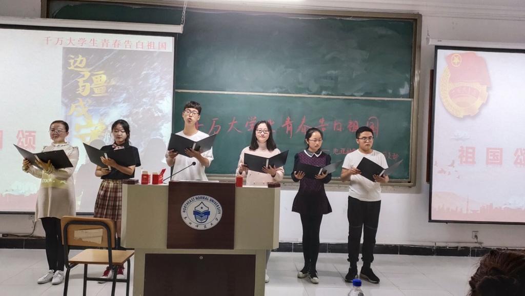 为庆祝中华人民共和国成立70周年,培养青年大学生爱国情怀和民族自豪感,地理科学学院团委组织全体团支部开展了“千万大学生青春告白祖国”主题团日活动。