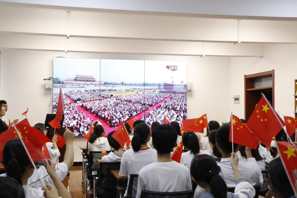 活动以歌唱《我和我的祖国》拉开了序幕,莘莘地理学子怀着激动自豪的心情歌颂着对祖国的热爱。2016级本科生郭蕊分享了她弟弟参加阅兵仪式的经历,辛苦而又自豪。在万众瞩目之中,在海陆空三军仪仗队手举国旗,迈着铿锵有力的步伐向我们走来,同学们深情吟唱国歌,向祖国表达自己最诚挚的祝福。除了学院两个集中的会场外,寝室、餐厅也有地理学子认真观看仪式的身影。