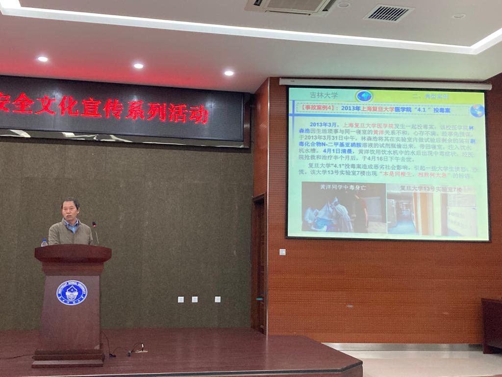 10月29日,由学校资产与实验室管理处主办、地理科学学院协办的实验室安全教育讲座活动顺利进行并圆满结束。本次讲座邀请吉林大学化学国家级实验教学示范中心副主任魏士刚研究员、吉林大学环安督查专家徐泽副研究员两位实验室建设和管理专家,就实验室安全问题及应对策略做2场主题报告。学校资产与实验室管理处副处长周瀛出席并代表学校介绍“实验室安全教育宣传月”系列活动。地理科学学院近60名师生参加了学习。本次讲座由地理科学学院副院长宋飏主持。
