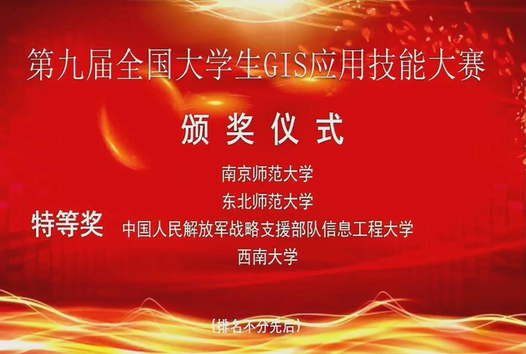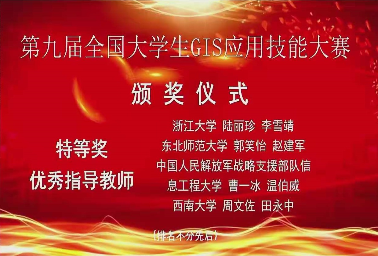 11月20日-22日,星空网页版登录入口参赛队在第九届全国大学生GIS(地理信息科学)应用技能大赛中荣获“特等奖”,我院地理信息科学系郭笑怡副教授和赵建军副教授荣获“优秀指导教师”。