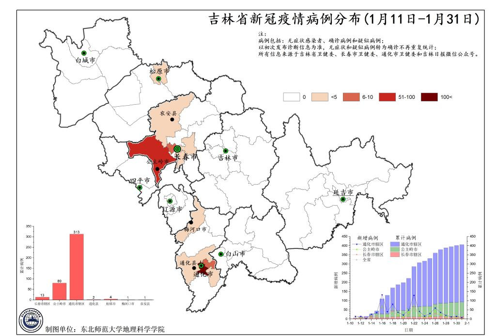 图1. 吉林省新冠疫情病例分布(1月11日-1月31日)