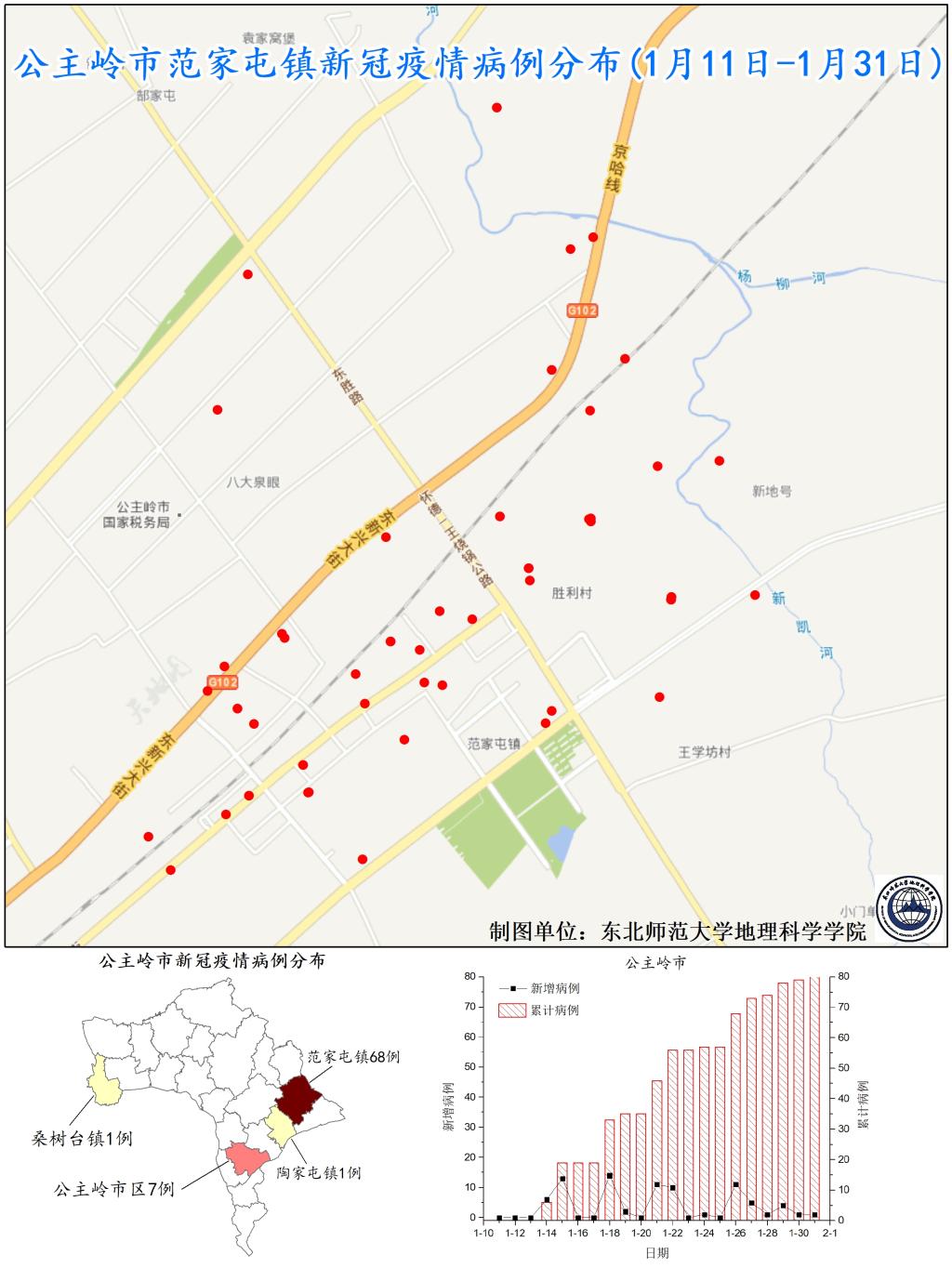 图4. 公主岭市新冠疫情病例分布(1月11日-1月31日)