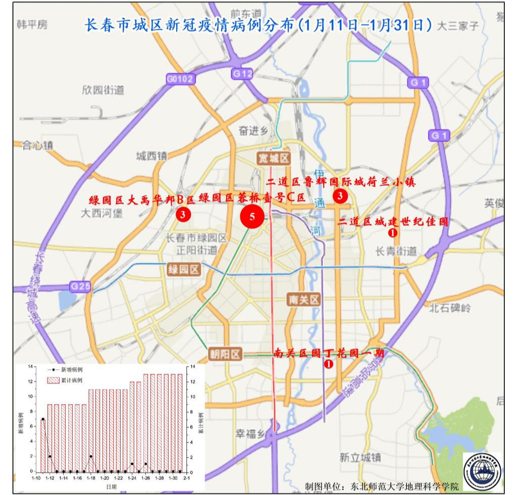 图2. 长春市城区新冠疫情病例分布(1月11日-1月31日)