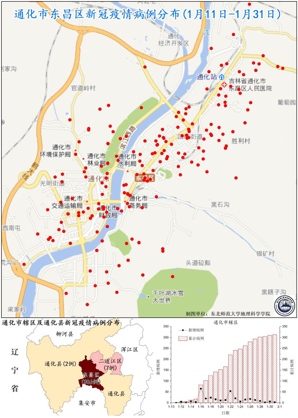 图3. 通化市新冠疫情病例分布(1月11日-1月31日)