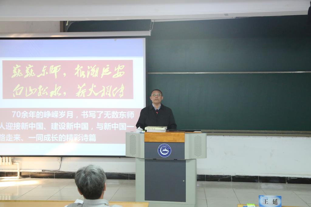 王延指出,东北师范大学校史是“四史”的有机组成部分,是坚定不移跟党走的历史,是坚决与国民党反动派作殊死斗争的历史,也是矢志不渝以国家民族利益为第一选择的历史。报告围绕“根在延安”“东师精神”“强校之梦”三个主题,回顾和系统梳理了我校“巍巍东师,根溯延安,白山松水,薪火相传”的峥嵘岁月,用生动史实和鲜活案例为师生展现了我校75年的发展历程和伟大成就。“根在延安”:回溯我校从发端延安、创建本溪、会师佳木斯、迁校吉林、到定址长春的历史脉络和时空变化,悉数历史上为我校创建和发展做出重大贡献的大师级人物,追溯学校红色基因和革命根脉,总结了我校“战火中诞生、建设新型正规大学、动荡曲折中探索办学道路、改革中壮大、建设世界一流师范大学”的发展历程。“东师精神”:从“根从延安精神”“反映办学特色”“体现校训精神”“突出教育理念”“表现四实品格”“彰显时代精神”等六个维度阐释了“强师报国,求实创造”的东师精神,重点解读学校“尊重的教育”“创造的教育”的教育理念,强调文化基因是学校最深沉、最持久的精神力量。“强校之梦”:他列举了我校近年来在学科建设、人才培养、科学研究等方面坚持内涵式发展、实现跨越式发展所取得的重大突破,解读学校“十四五规划”建设目标和“研究型、综合性、国际化世界一流师范大学”的发展战略愿景。最后,王延满怀深情地说到,东师校史充满了爱党、爱国、爱人民的精神与情怀,是一部充分诠释“四个自信”的生动教材,广大师生要在全新历史时期加强党史校史学习,在历史中汲取力量,继承革命传统,传承红色基因,爱党爱校,增强“四个自信”,以昂扬姿态干实事、开新局,同心协力推进世界一流师范大学建设,以优异的工作成绩迎接建党一百周年。报告会现场饱含深情,气氛热烈,一次次响起热烈的掌声。