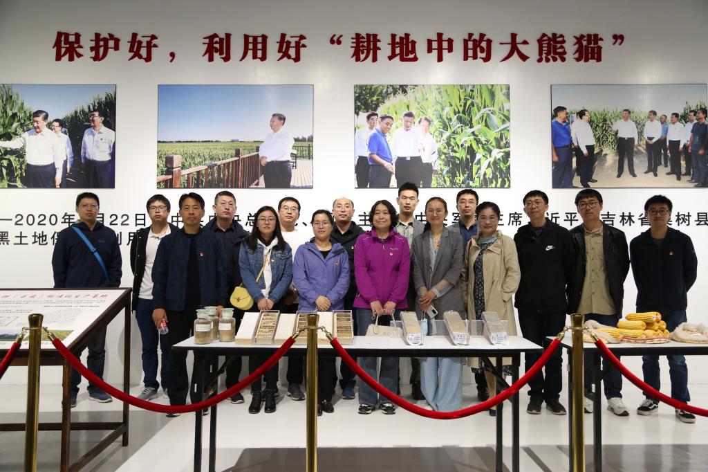 本次活动邀请梨树县农业技术推广总站站长王贵满和农技员王影介绍习近平总书记关于黑土保护、利用的要求和“梨树模式”,活动由三个站点和内容组成。第一站,参观中国黑土地博物馆,全体党员重温了习近平总书记关于 “一定要保护好、利用好黑土地这一‘耕地中的大熊猫’;一定要深入总结‘梨树模式’,向更大的面积去推广;一定要因地制宜探索农业合作化道路”的重要讲话精神,王影详细地介绍了黑土形成过程、黑土地现状以及保护利用措施。第二站,踏查梨树县国家百万亩绿色食品原料(玉米)标准化生产基地核心示范区,王影向党员同志介绍了黑土地秸秆还田和免耕种植等的相关情况,习近平总书记就是在这里提出要保护好黑土地这一“耕地中的大熊猫”。第三站,参观梨树县卢伟合作社和科学实验田,王贵满深入田间、结合实地全面地介绍了“梨树模式”。他说,秸秆覆盖、条带休耕、机械化种植,一次作业即可完成清理秸秆、开沟、施肥、播种、覆土、镇压等工序,这是“梨树模式”的核心;这些离不开习近平总书记强调的加强农业与科技融合,加强农业科技创新的生活实践。王贵满表示,愿意为更多科研机构和高校工作人员搭建科研平台,借助其人才和技术优势,开展科研攻关,提升和推广“梨树模式”。