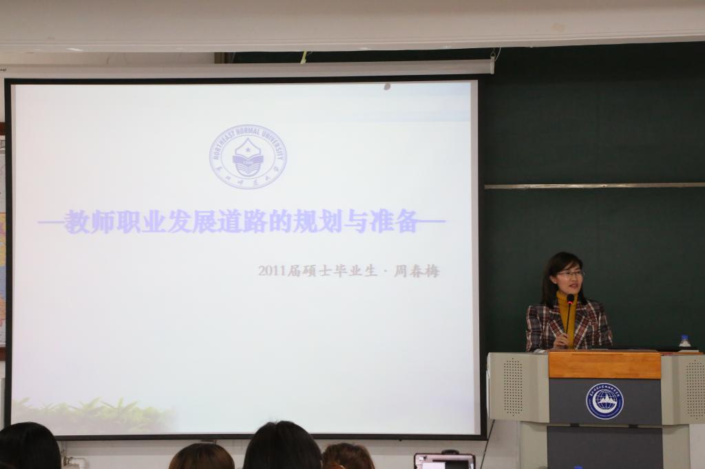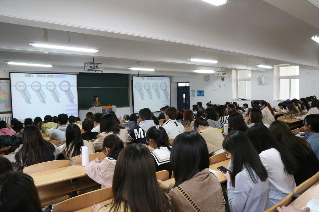 周春梅从教师职业的发展目标、大学阶段的专业积淀、实习阶段的职业自信和初入职场的角色调整四个维度,结合自己的亲身经历与感受,为学生们带来了一堂生动深刻的教师职业生涯指导课。周春梅谈到,教书育人关乎国家和民族的未来,从事教师行业必须树立长远的职业目标;在大学阶段要注重对专业知识、教学原理和教师技能的掌握;实习期通过不断的听课、磨课和讲课积累职业自信;入职前做好最充分的知识和能力准备才能在职场发挥得游刃有余。会后,与会学生纷纷表示,此次经验分享让他们对教师行业有了更深的理解,也更加坚定了成长为卓越教师的信念。