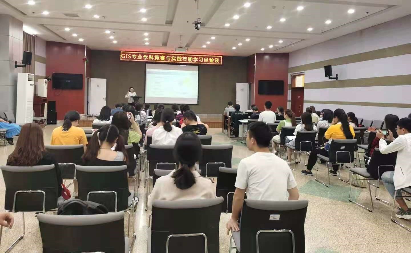 两位老师的讲座引人入胜,现场座无虚席,讲座结束后与学生进行了深入地交流。两位老师每年到访数十所高校,帮助学生了解GIS专业,并在全国范围内推广GIS 竞赛。本次交流为应届毕业生升学与就业方面提供了丰富的数据与经验,也为有意向参加GIS专业竞赛的学生提供了可借鉴的成功经验,并引导学生深入了解了GIS学科竞赛;同时,此次交流也为我院参加GIS学科竞赛和参与竞赛人员的培养方面提供了指导经验。