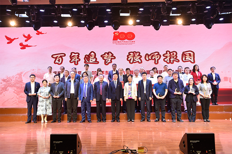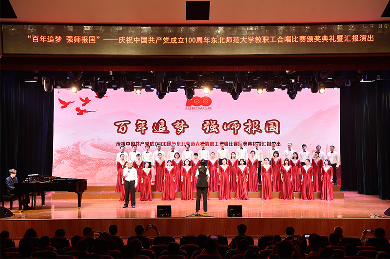 6月15日,由学校党委宣传部和校工会联合主办的“百年追梦 强师报国”庆祝中国共产党成立100周年东北师范大学教职工合唱比赛颁奖典礼暨汇报演出圆满结束。我院合唱团40余名教职工演唱了《不忘初心》和《七律—长征》两首歌曲,荣获合唱比赛三等奖。