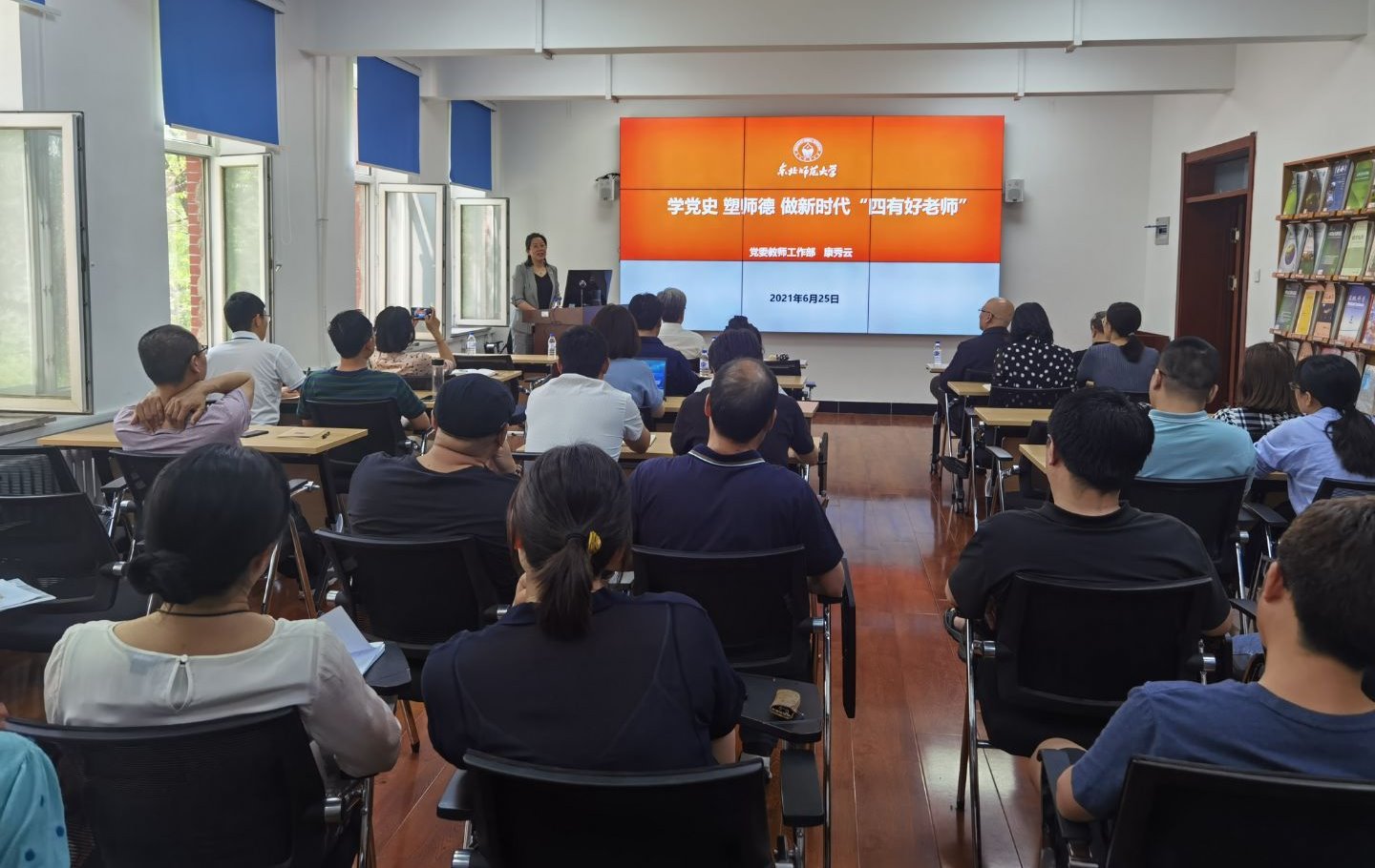 近日,为贯彻落实学校开展党史学习教育要求,引导广大教师坚定理想信念、厚植爱国情怀、涵养高尚师德,地理科学学院党委邀请我校党委教师工作部副部长、党委宣传部副部长,马克思主义学部教授康秀云为全体教师开展“学党史 塑师德 做新时代‘四有好老师’”党史学习教育专题党课。