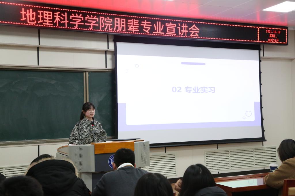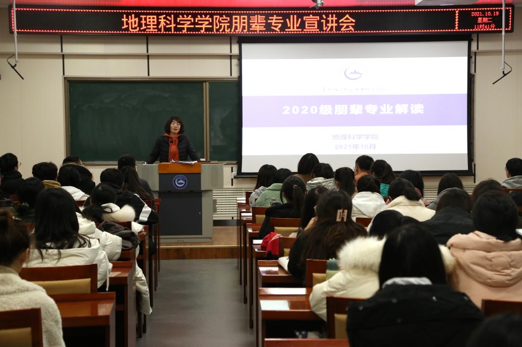 10月19日,地理科学学院召开2020级朋辈专业分享会。学院党委副书记副院长陈静,团委书记沈雯,2020级本科生辅导员董文标,2018级地理科学、人文地理与城乡规划、地理信息科学的优秀朋辈模范和2020级地理科学类全体学生共计百余人参加了本次活动。