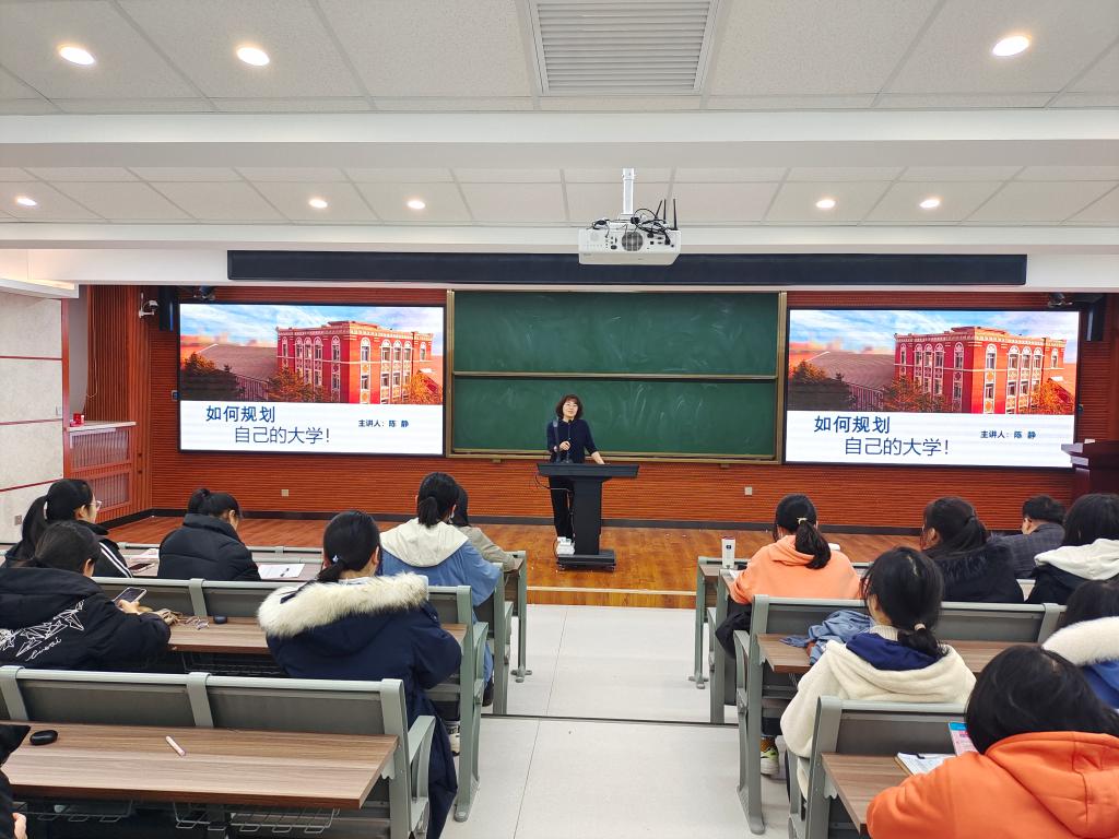 11月10日,地理科学学院党委副书记、副院长陈静开展了题为“如何规划自己的大学”的讲座,2021级本科生共计159人参加本次活动。