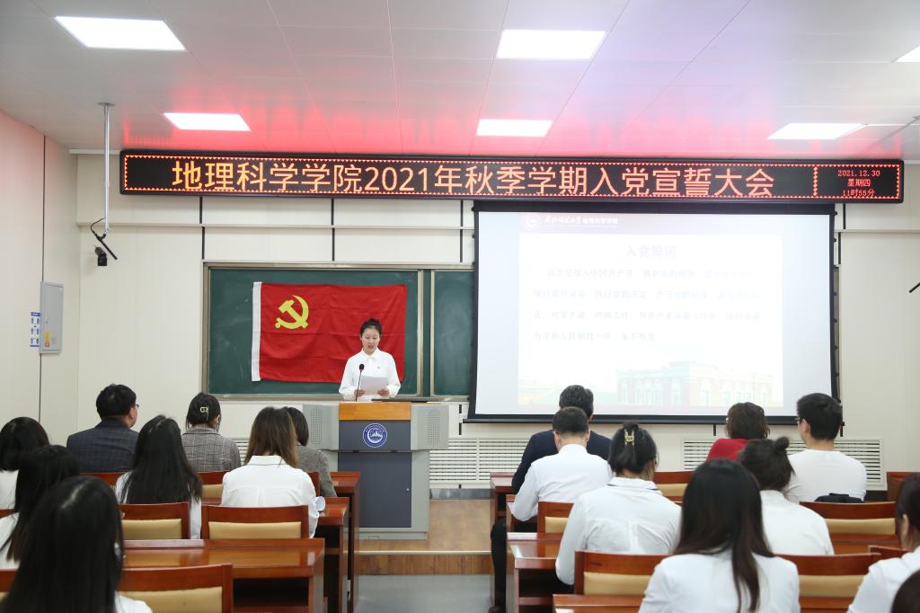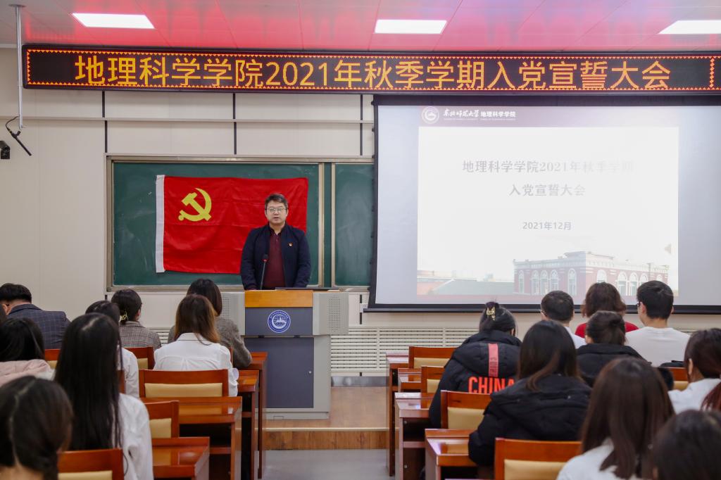 12月30日,地理科学学院在四楼报告厅隆重举行入党宣誓大会。学院党委常务副书记陈静、党委副书记副院长杨成岭、团委书记沈雯、各学生党支部书记和全体学生预备党员共计70余人参加了大会。大会由学院党委副书记副院长杨成岭主持。