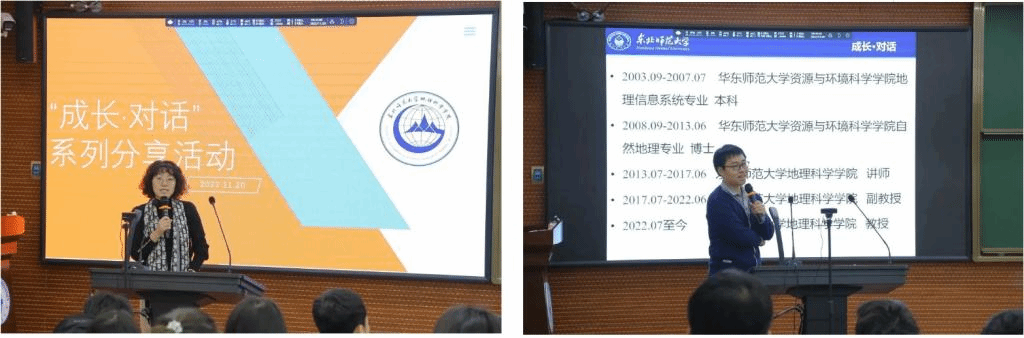 11月20日,地理科学学院党委举办第四期“对话·成长”青年教师成长分享活动,自然地理与资源环境系汪祖丞教授、人文地理与城乡规划系魏冶教授、地理信息科学系孙仲秋教授三位青年教师做了分享报告。活动由学院党委常务副书记陈静主持,团委书记赵琳、辅导员姚佳、隋蕙咛以及近200名同学参加了分享活动。