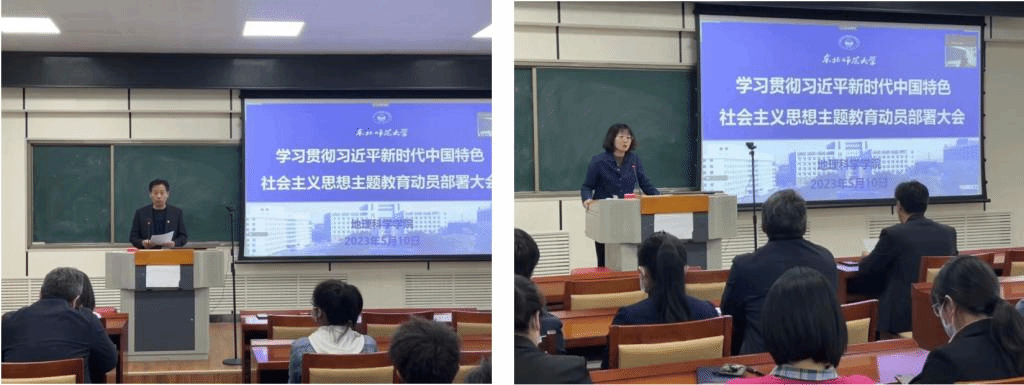 2023年5月10日,星空网页版登录入口在学院四楼报告厅和一楼地理大教室同步召开学习贯彻习近平新时代中国特色社会主义思想主题教育动员部署大会。学院党委书记卜兆君作动员讲话,党委常务副书记陈静主持会议,学院领导班子及全体教师、学生党员出席会议。