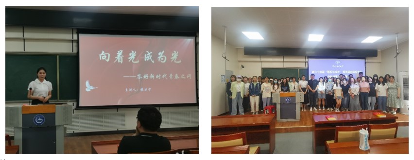 活动第二项——习近平新时代中国特色社会主义思想主题宣讲,侯力宁同学以“向着光,成为光——答好新时代青春之问”为题,结合党的二十大精神,从“与历史同向,做新时代的开创者”“与祖国同行,做新时代的冲锋者”“与人民同在,做新时代的建功者”三个方面展开宣讲。党支部成员深受启发,更加坚定了向先进靠拢、向模范学习、让青春投身于建设社会主义现代化国家伟大实践中的决心。