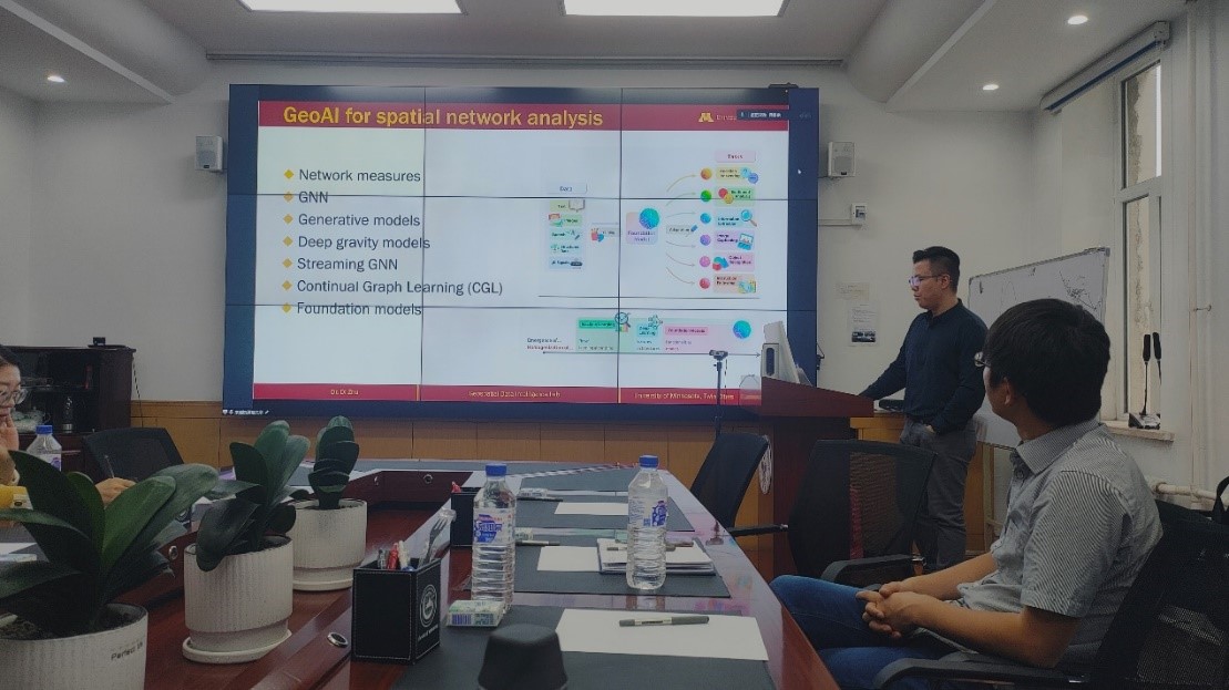 朱递教授通过引入社区可重叠性的假设,利用地理人工智能模型和机器学习算法,从人类移动性数据中揭示城市空间网络的两个重要特征:重叠社区结构和集体流演化模式,并讨论对应的社会经济价值,为洞悉城市网络结构提供了可能。报告结束后,朱递教授参观了长白山地理过程与生态安全教育部重点实验室,并与地理科学学院院长白娥教授等进行了深入交流。白娥教授表示朱老师的报告高度切合我院地理信息科学的发展,对提升我院的科研工作具有重要的指导意义,希望朱教授与学院在未来开展深入交流与合作。