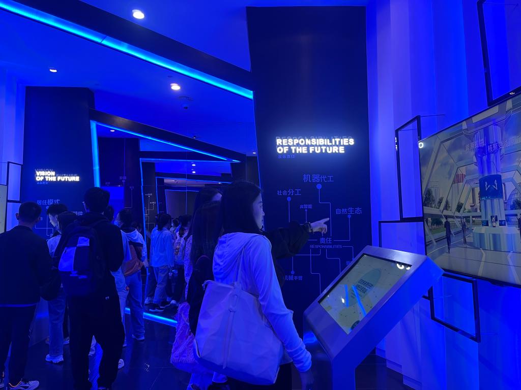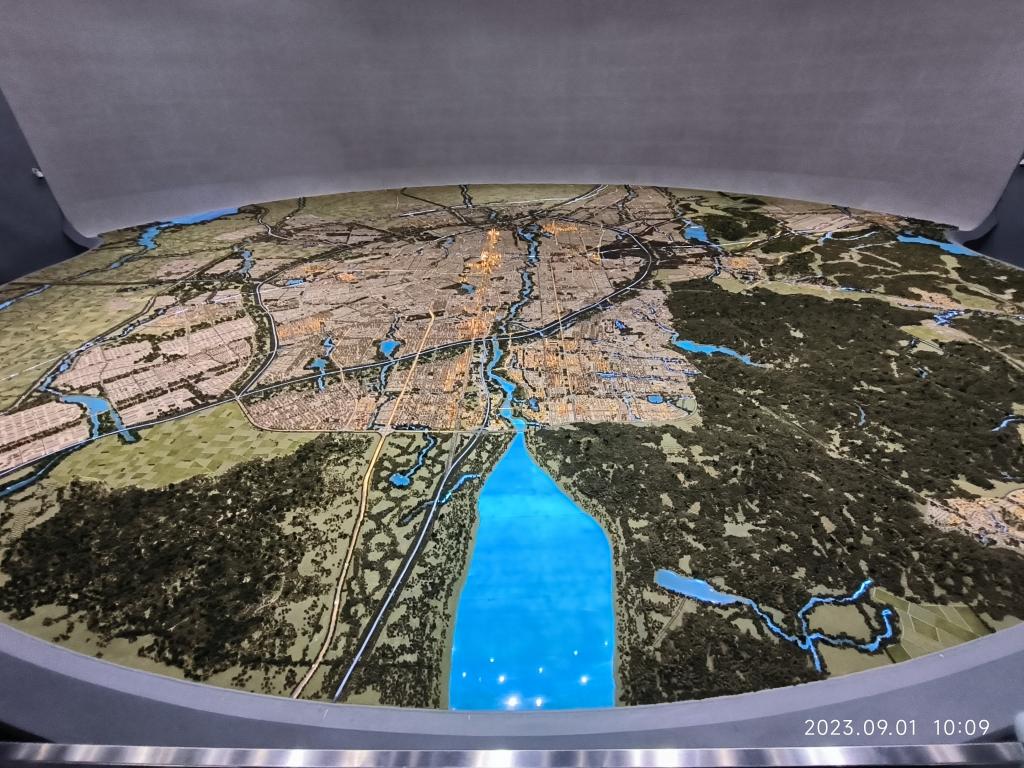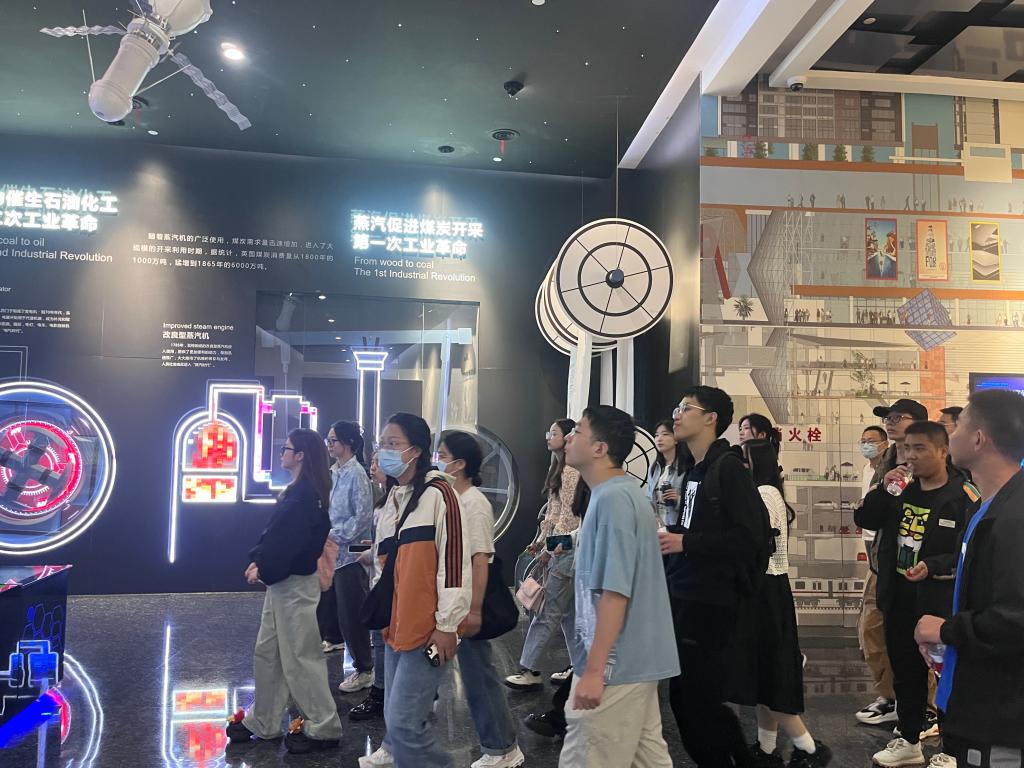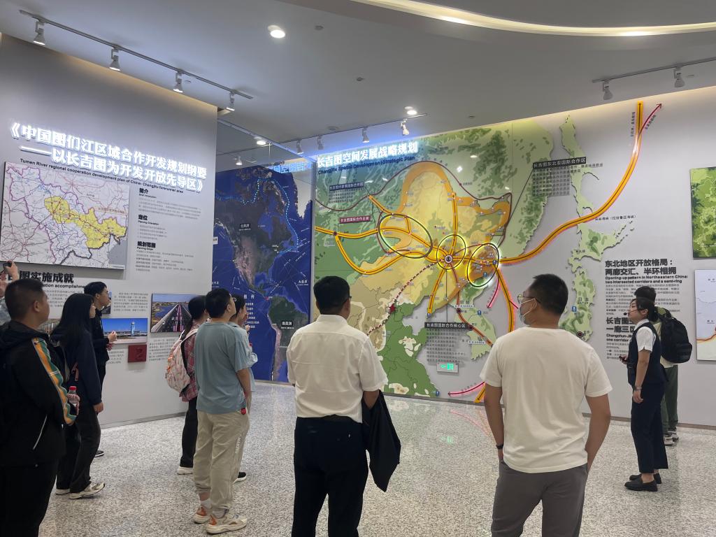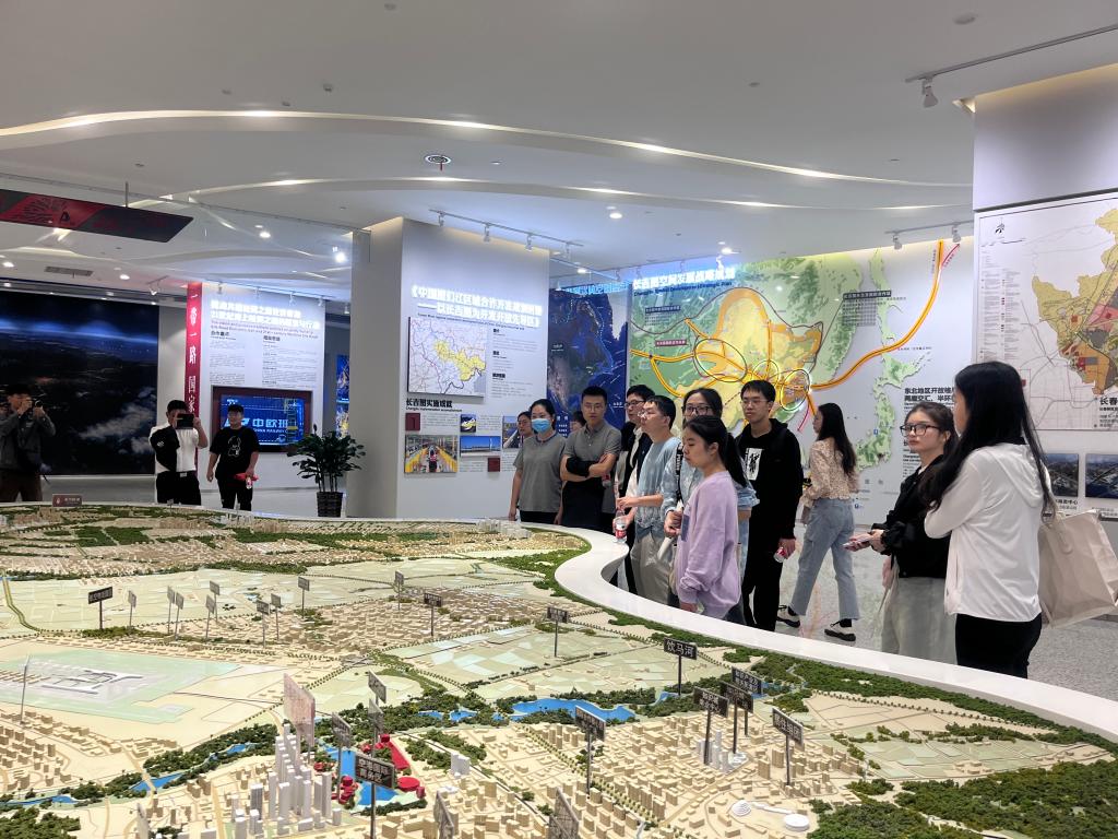 “开学第一课”以“长春市城乡规划与城市发展”为主题,涵盖了城乡规划的前沿进展与实践案例等内容。在老师和规划馆解说员的引导下,同学们穿越时空走廊重温了长春市200年的快速发展历程,俯瞰沙盘全面了解了长春市的总体空间布局和“六城联动”发展战略,透过模型图纸认真熟悉了长春市轨道交通及施工工艺、交通枢纽布局、智慧监测平台、伊通河区域户型沙盘及环境改造方案、公共基础设施建设、未来城市规划愿景及建筑类型、新能源应用等城市发展领域和建设项目。驻足在设计感十足的路网照片前辨别不同城市的发展骨架,停留在吉林省“一主六双”高质量发展的宏伟蓝图前踌躇满志、若有所思,师生们还一起在代表长春市地域的金属牡丹花(又称“城市之花”)前合影留念。