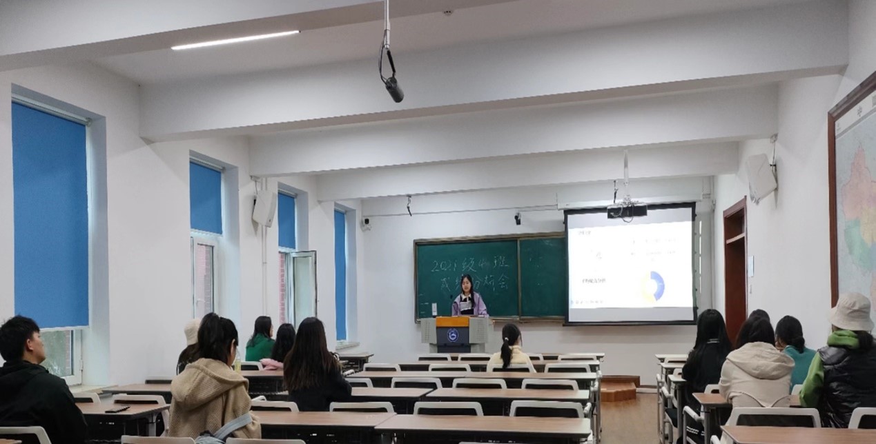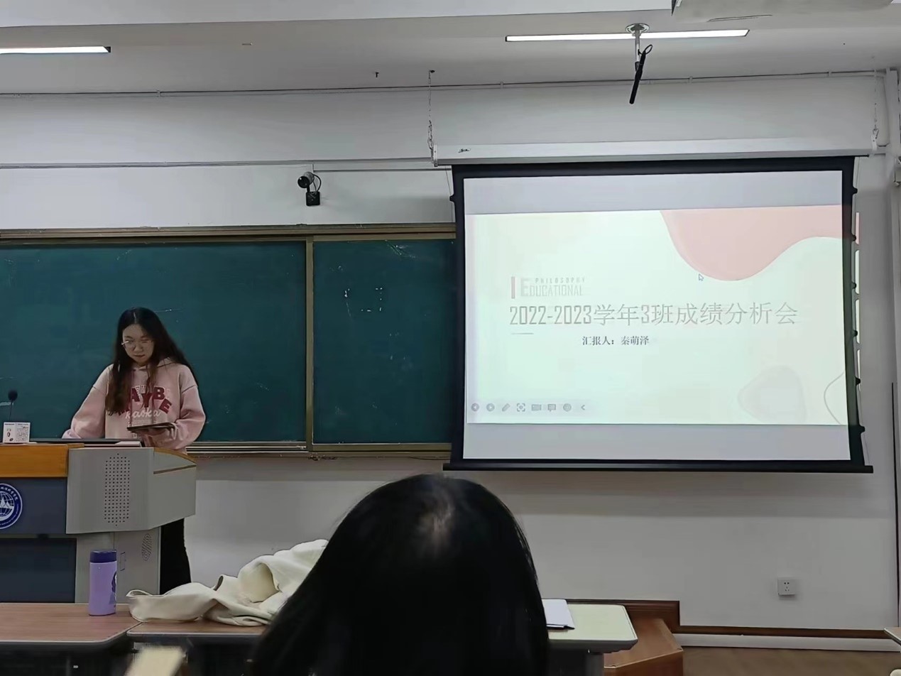 会议召开前,辅导员张婧宁老师组织同学撰写“我的人生蓝图”,分别聚焦就业和升学等维度,帮助同学们进一步明晰大学规划,有针对性的为同学们提供帮助和支持。在各班会议中,首先学习委员通过图表的形式分析大二学年班级平均绩点、个人进退步名次、寝室绩点排名、挂科人数等情况,在对比中让同学们对自身学业情况重新审视,促使总结反思。接着是学习经验分享环节,地理科学(公费师范)1班邀请到2020级刘宛昕学姐在线上为同学们的专业课学习和中学地理课程学习提出建议;地理科学3班邀请到2020级李成奥学长为同学们分享保研经验;其他班级则通过班级内优秀学生和成绩进步明显学生的分享,让同学们拓宽思路,从身边小事开始勇敢求变,逐步实现自己的学习目标。最后是总结与展望环节,各班学习委员根据班级自身特点提出未来规划,为同学们蓄力再出发增添了信心。
