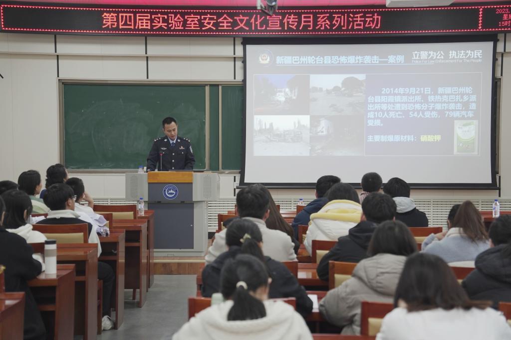 11月1日,我院举办2023年度“实验室安全活动月”系列活动之实验室易制爆危险化学品管理安全讲座及实验室安全应急演练活动。活动邀请到吉林市公安局治安管理支队二级警长计永刚做实验室易制爆危险化学品管理讲座,埃德伯格实验室EHS研究中心讲师刘存做应急演练全程讲解。地理科学学院副院长宋飏,我院相关专业教师、实验室负责人,及拟申请进入实验室的硕博新生70余人参加了活动。本次活动由学院实验室安全管理员刘莎莎老师主持。