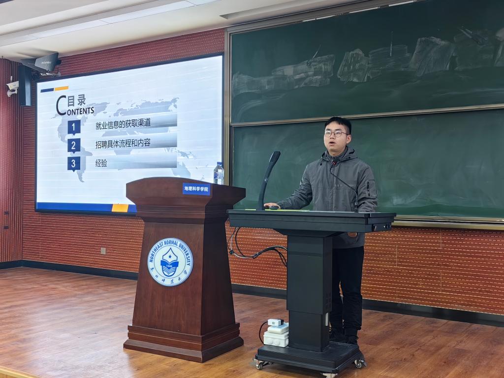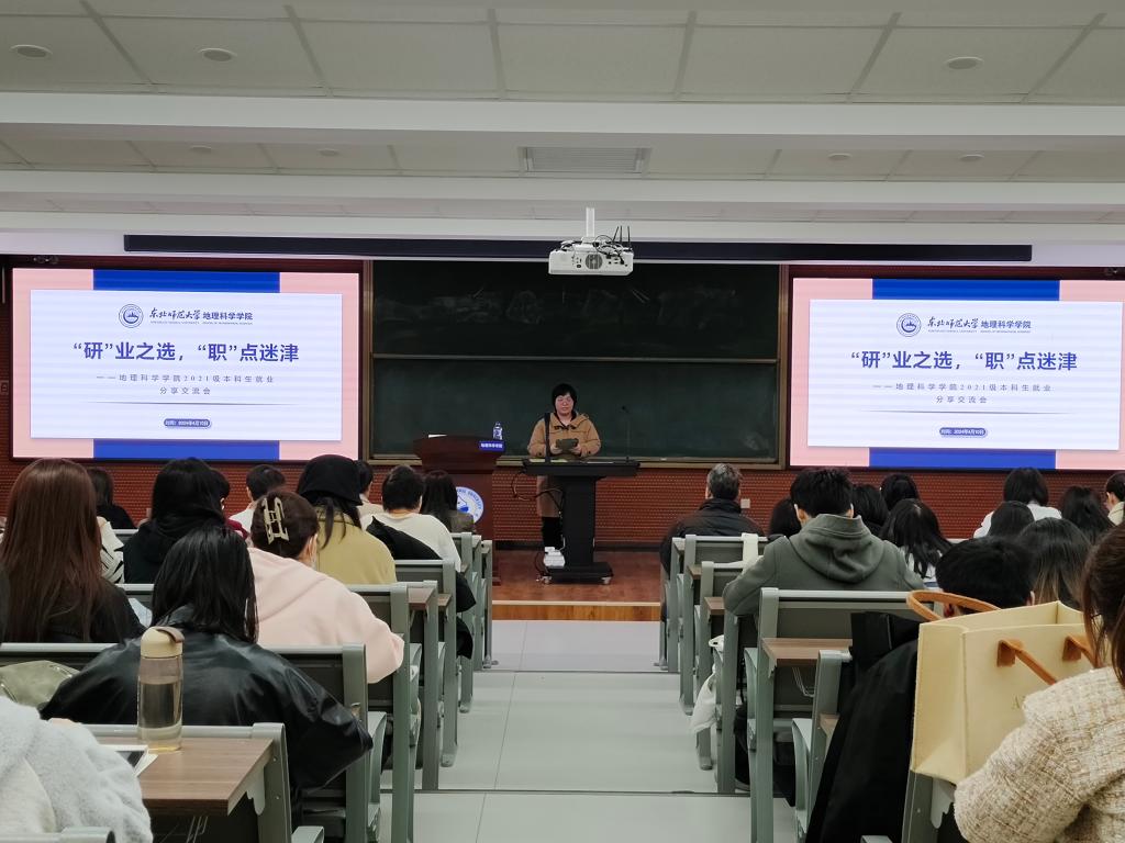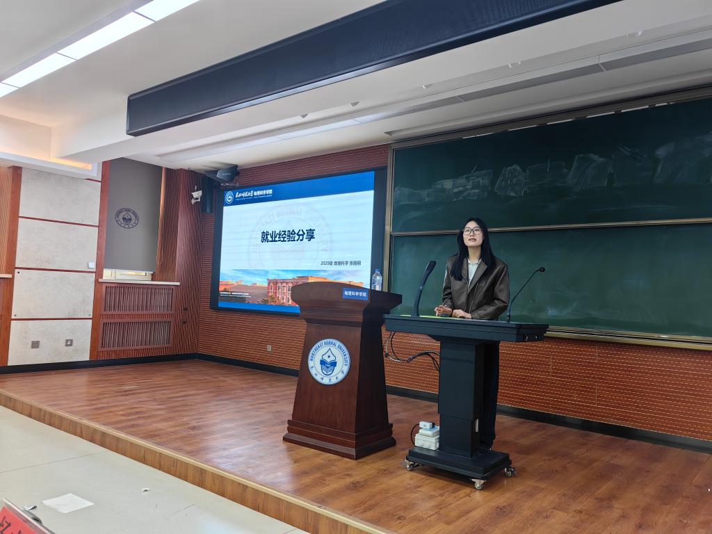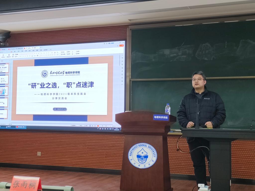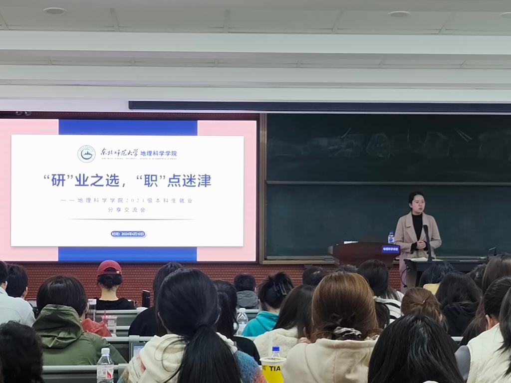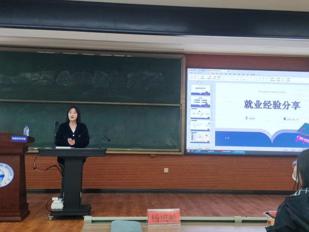 4月10日下午,“研”业之选,“职”点迷津——地理科学学院2021级本科生就业分享交流会在地理大教室举办。本次活动邀请到了学院党委副书记兼副院长杨成岭老师、2021级本科生辅导员张婧宁老师和多名2020级成功就业的本科生进行交流分享,2021级本科生积极参与本次活动。