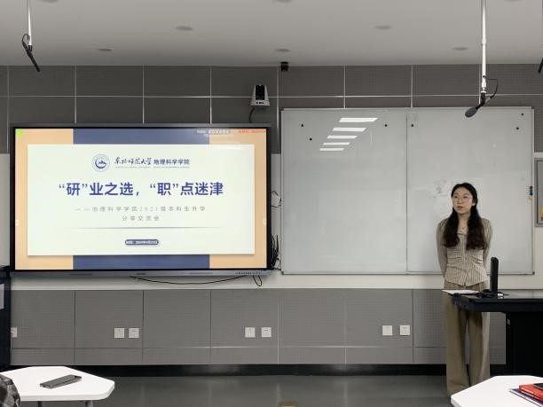 4月22日,“研”业之选,“职”点迷津——地理科学学院2021级本科生升学分享交流会在学院117教室举办。本次活动邀请到两位2020级考研成功学生和一位2023级研究生做分享交流。
