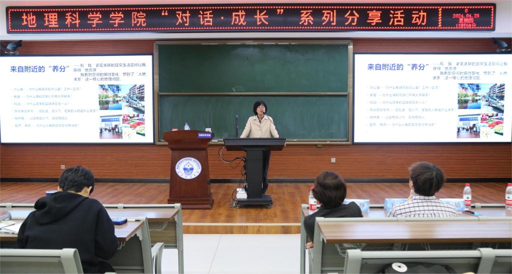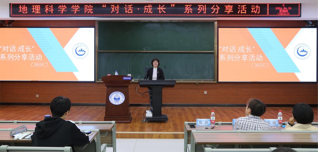 4月25日,地理科学学院党委举办第六期“对话·成长”青年教师成长分享活动,邀请自然地理与资源环境系王猛教授、人文地理与城乡规划系张婧副教授两位青年教师做了分享报告。活动由学院党委常务副书记陈静主持,辅导员姚佳、隋蕙咛以及近200名同学参加了此次活动。