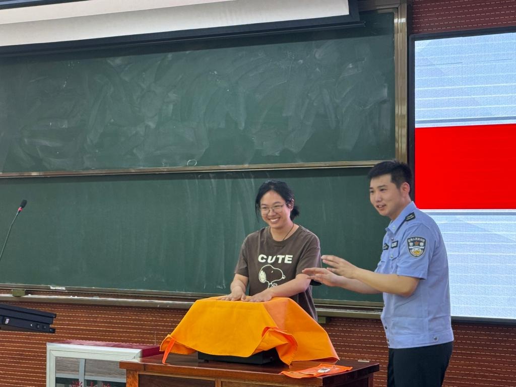 在安全知识讲座环节,徐欣康从案例分析、消防知识和技能演练等多个维度进行介绍,主要包括消防安全形势、火灾成因及分类、校园防火注意事项、灭火及逃生自救方法等应知应会内容,学生们了解了在校园火情发生时,如何科学有效地保护自己与身边人的生命财产安全。培训实操环节,到场师生也在保卫处老师指导下,对虚拟火源进行了扑灭练习,掌握了消防灭火的基本操作。