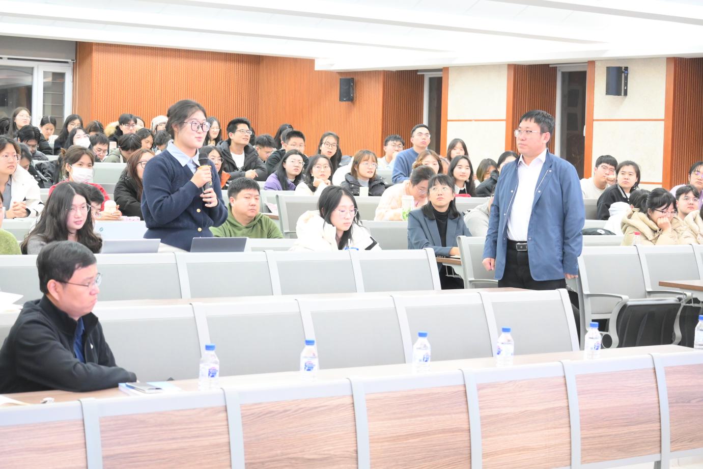 交流互动环节师生们踊跃发言、提问,气氛活跃,围绕土地利用转型与乡村振兴等话题展开了热烈的交流和讨论,龙花楼针对现场提出的如何实现治理有效的乡村振兴、资源型乡村产业转型、乡村振兴和城镇化进程的关系等一系列问题进行了耐心细致的解答,并对于东北地区人口收缩现状下如何进行乡村产业振兴提出了建议,同时,勉励同学们在学习与研究中要将所学知识与实际相联系。现场学术气氛浓厚,有力促进了一线教师对相关领域科研的研究推进,也大大激发了现场本科生以及研究生的学习热情。