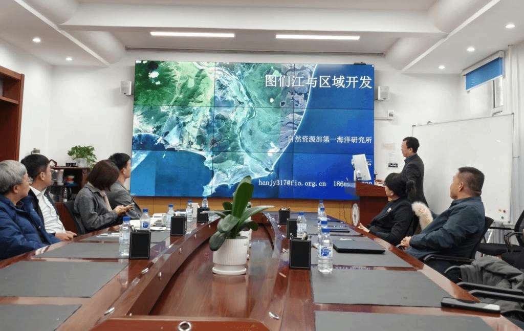 韩京云做了主题为“图们江与区域开发”的学术报告。报告内容涵盖图们江区域的基本情况和开发背景,详细阐述图们江区域开发从最初防川港的建设构想到大图们倡议(GTI)四十年的发展历程,并分享自1990年以来对图们江下游及河口海域的环境调查情况,最后回顾了图们江区域开发过程中遇到的主要问题和面临的挑战。