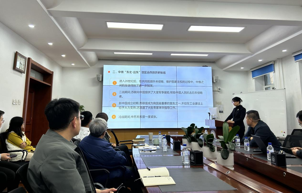 韩东朔做了主题为“吉林省参与中俄‘东北-远东’地区合作的背景、基础与路径”的学术报告。报告首先分析了中俄合作的宏观环境和战略意义,其次探讨了吉林省在中俄‘东北-远东’合作中的比较优势和现有基础,最后提出吉林省参与中俄‘东北-远东’地区合作中的发展策略和路径。