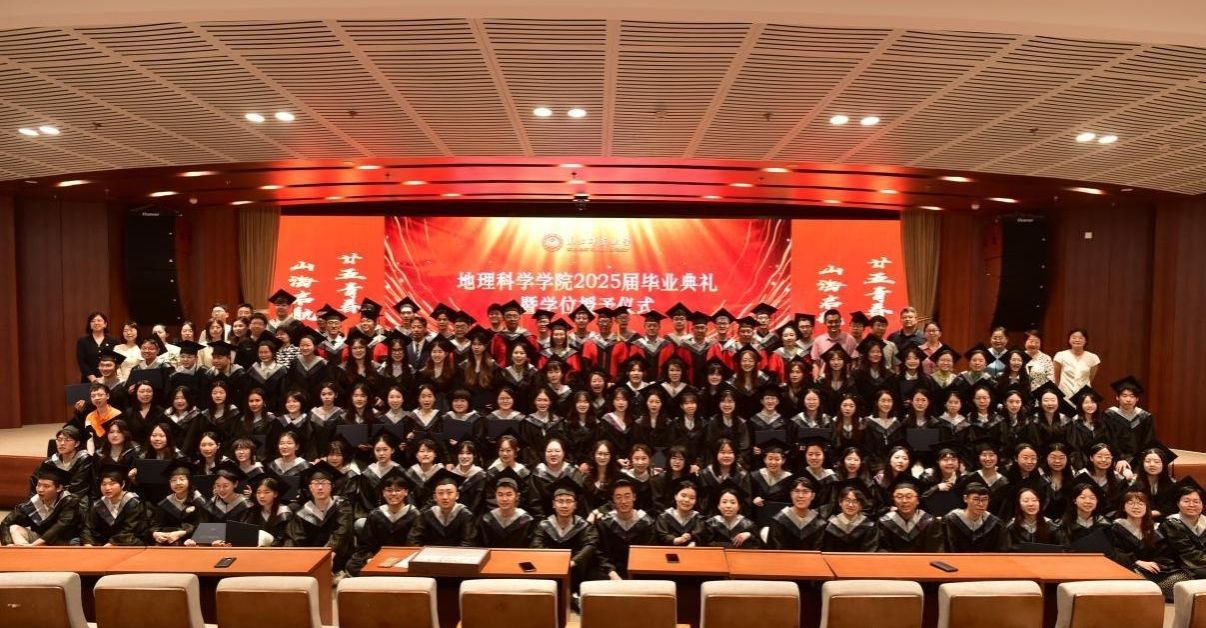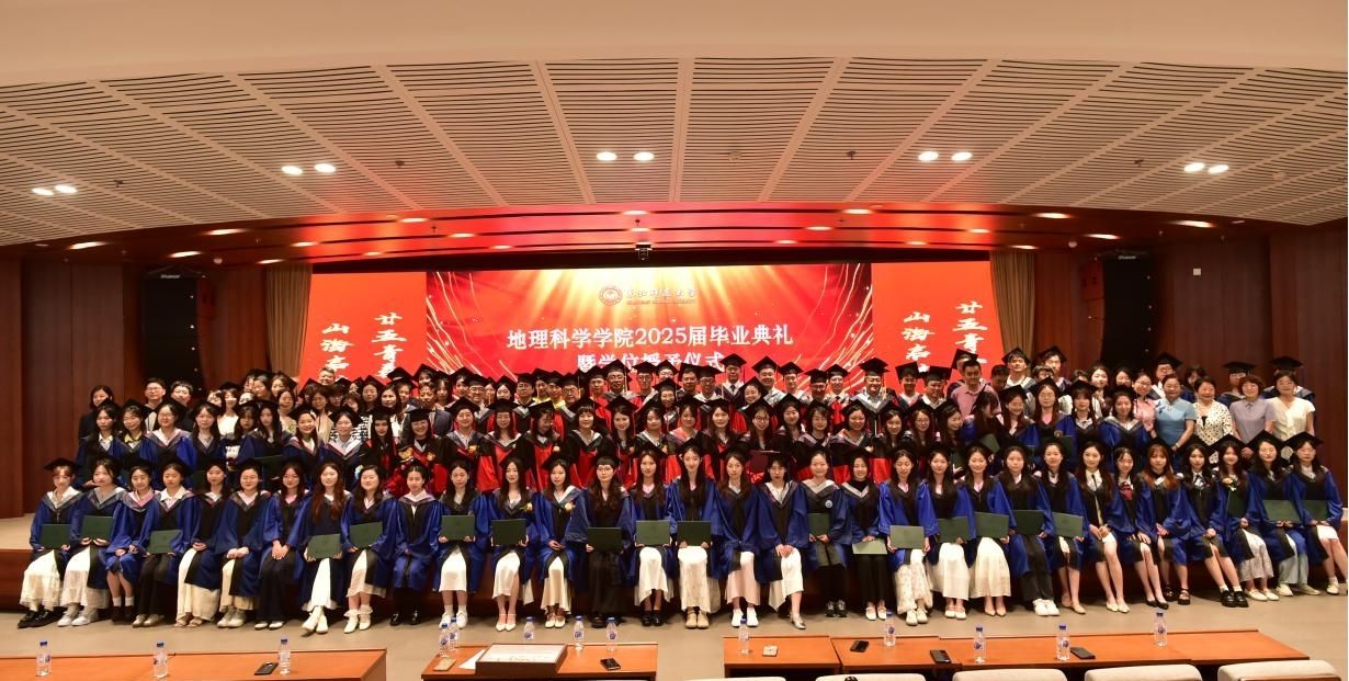 地理科学学院2025届学生毕业典礼暨学位授予仪式在温馨而庄重的氛围中圆满落幕。毕业生们合影留念,记录下这一重要时刻。他们带着学院的祝福与期望,踏上了新的人生征程,准备书写属于自己的精彩篇章。