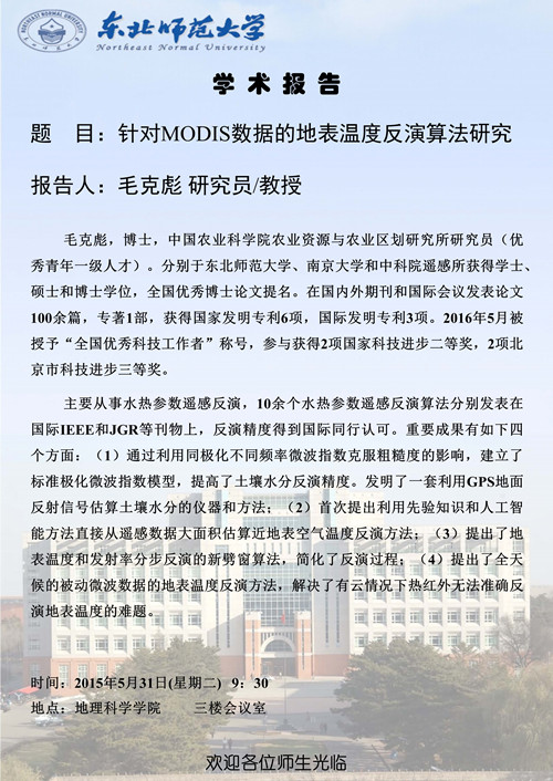 毛克彪:针对MODIS数据的地表温度反演算法研究