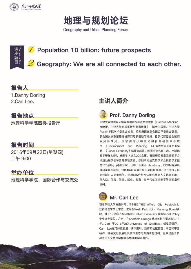 Danny Dorling & Carl Lee:1.Population 10 billion: future prospects;2.Geography: We are all connected to each other