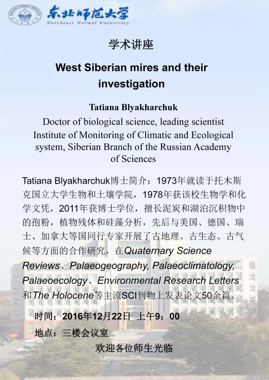 Tatiana Blyakharchuk:West Siberian mires and their investigation