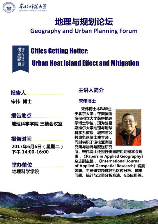 【地理与规划论坛】宋伟:Cities Getting Hotter: Urban Heat Island Effect and Mitigation